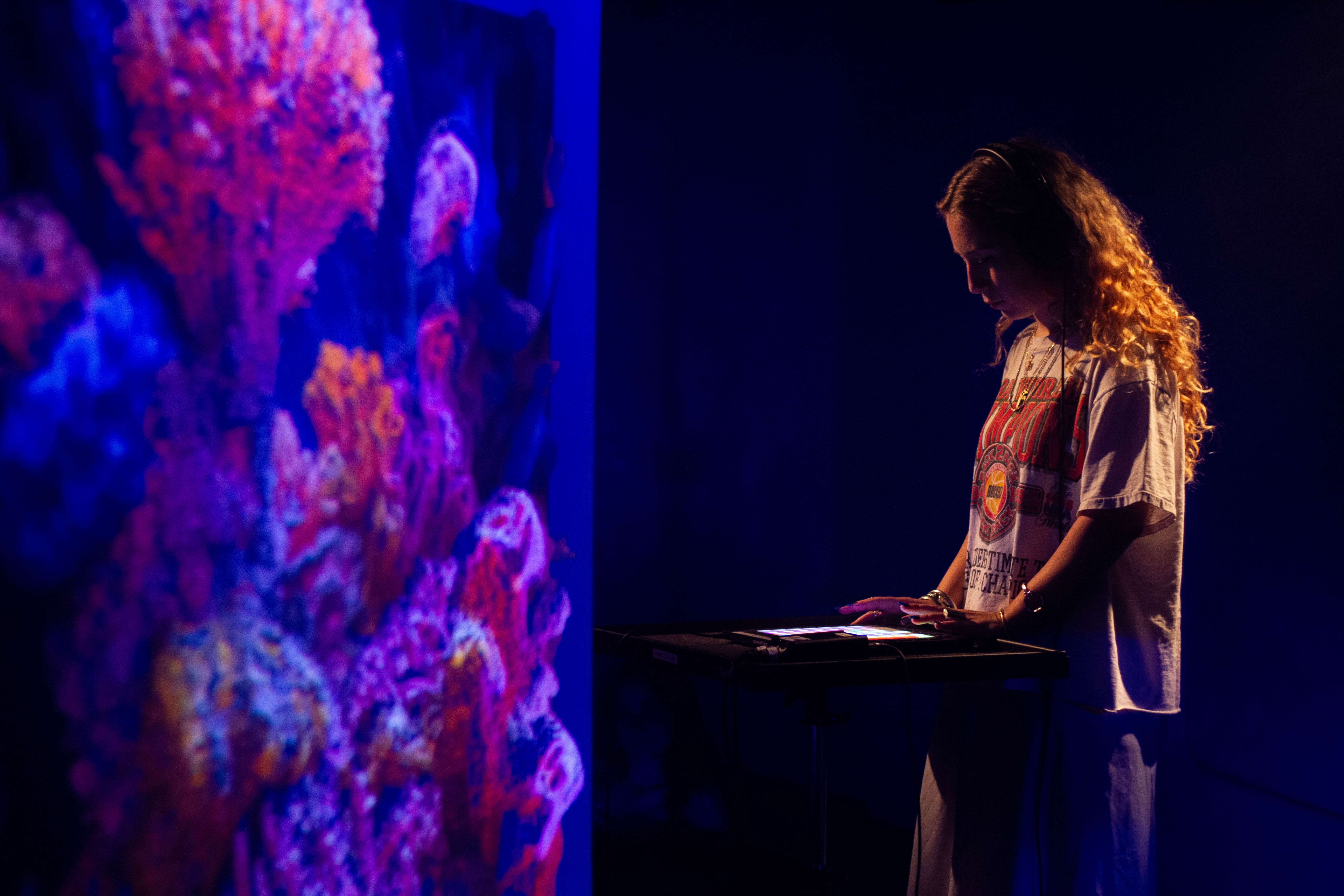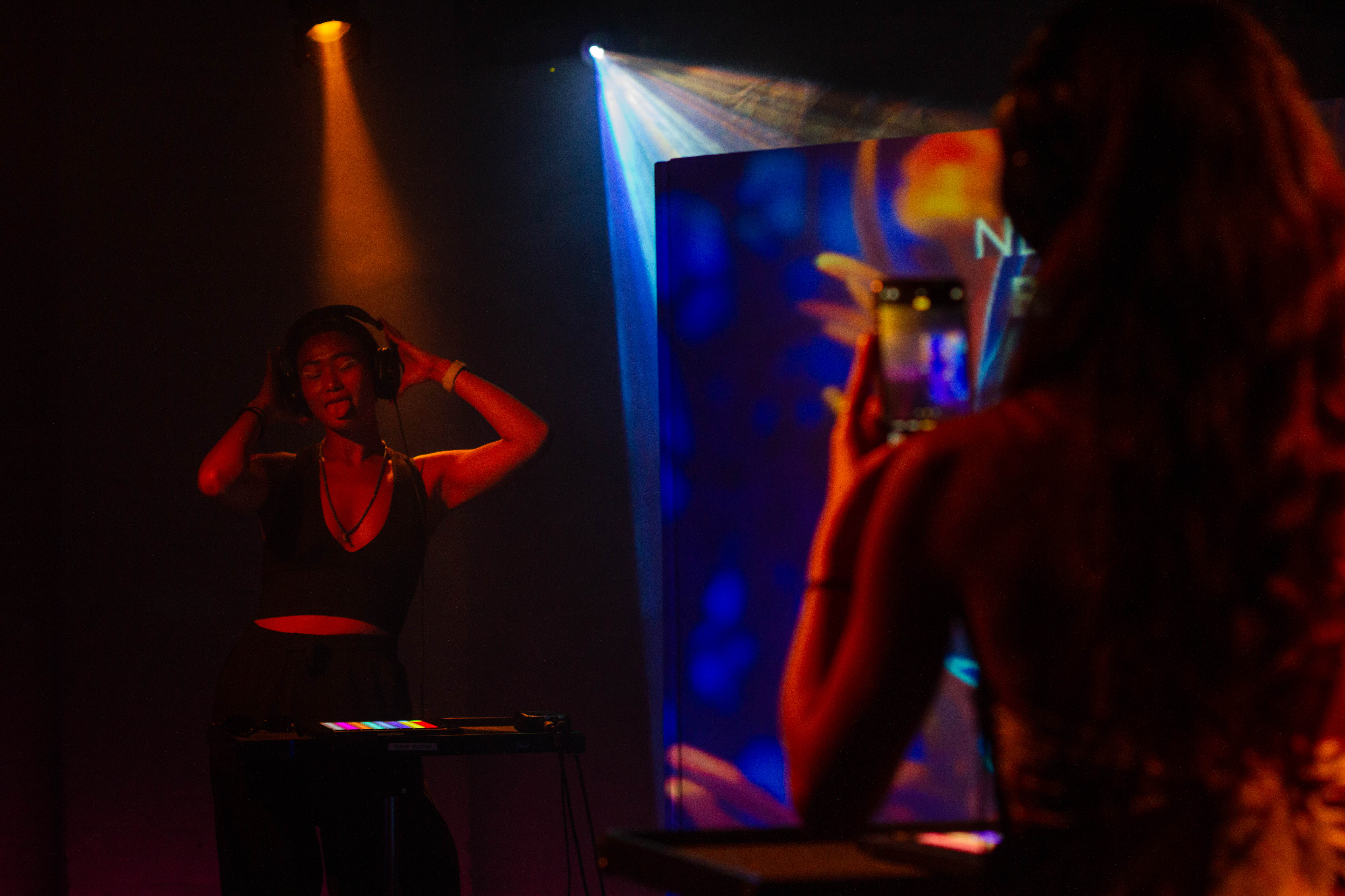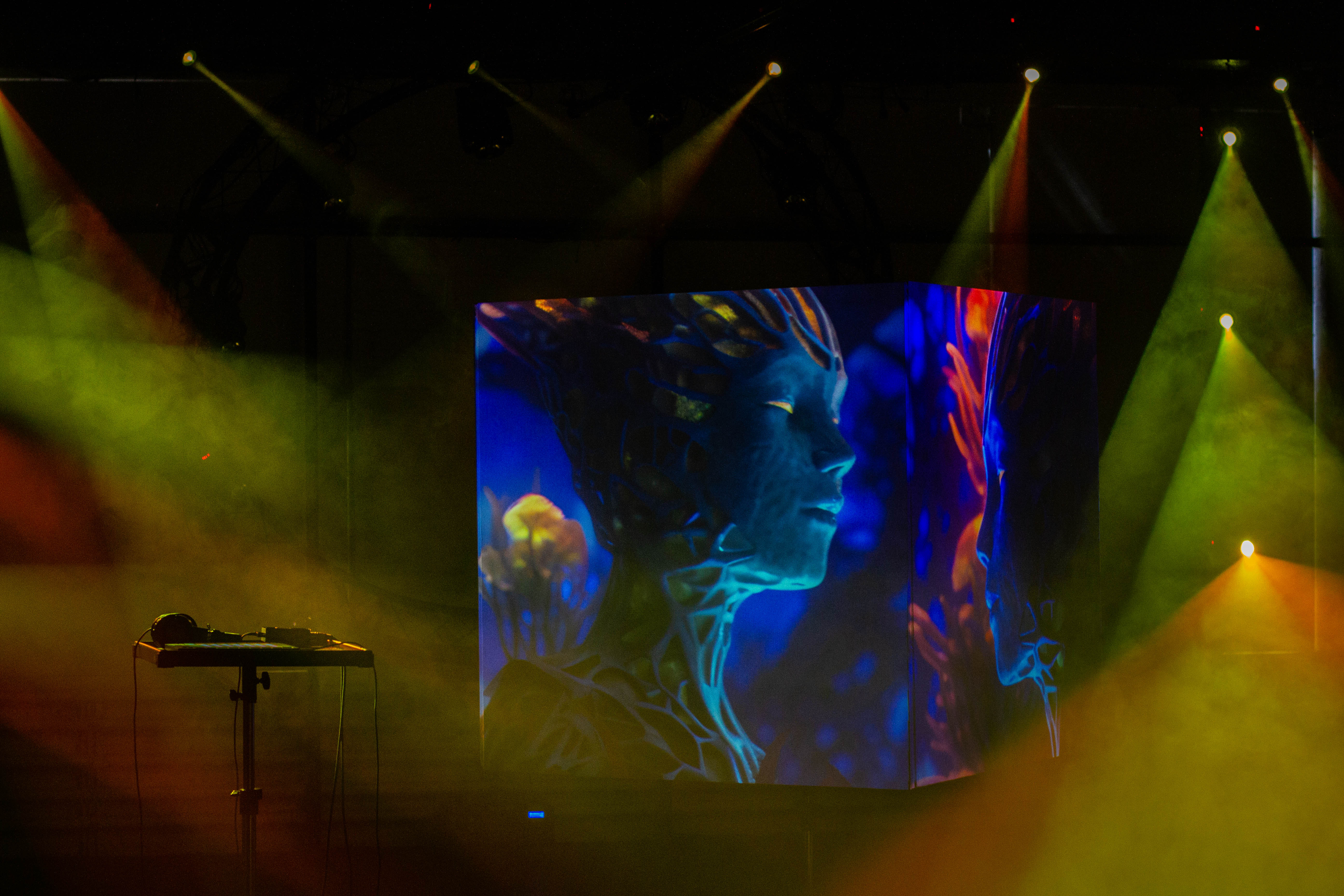 Be|Longing is an interactive installation and social experiment that invites two people to find harmony—both musically and emotionally. Standing across from each other, each participant uses a Novation Launchpad to trigger loops in different keys while a projection-mapped cube between them reacts in real time to every sound. The pair have four minutes to listen, respond, and align—privately crafting their own sonic chemistry while the audience hears only ambient solfeggio tones. When the countdown ends, their final harmony fills the space, revealing what connection sounds like when shaped through deep listening. Blending Ableton, Resolume, and TouchDesigner, Be|Longing explores the duality between being and longing—a meditation on coexistence, empathy, and the subtle intelligence of sound.